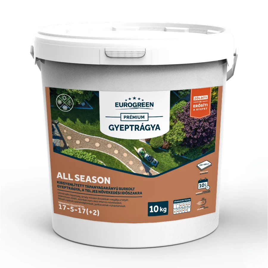 Az ALL SEASON tökéletes univerzális tápanyag, amely minden évszakban megállja a helyét. Jelentősen zöldít, azonban nem okoz intenzív növekedést. Növeli a pázsit szárazságtűrését, javítva annak vízháztartását.