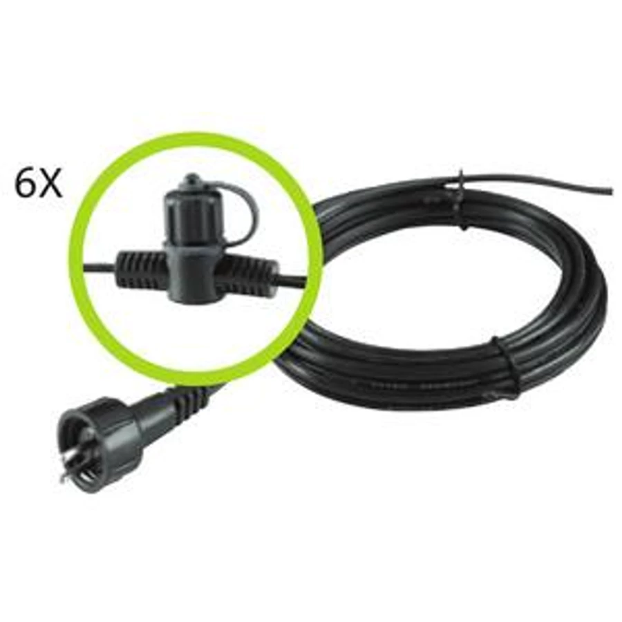 Ezzel a 15 méteres fő kábellel kész rendszert vásárol. 2 méterenként van egy fix csatlakozási pont a lámpák főkábelén. Az összes Garden Lights lámpa rendelkezik csatlakozóval ellátott kábellel, amely illeszkedik ezekhez a csatlakozási pontokhoz. Ehhez a rendszerhez nem kell külön tartozékot vásárolnia. Ez egy SPT-3 kábel.