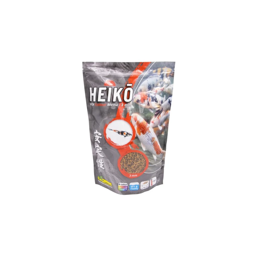 Az Heiko® - Koi Color Menu magas tápanyag-, vitamin- és nyomelemtartalmú teljes értékű táplálék a trópusi díszhalak kiegyensúlyozott étrendjéhez 3 mm-es lebegő szemcsékben (10 cm-es vagy nagyobb halakhoz). A Koi Color Menu asztaxantint is tartalmaz, amelyek természetes színfokozók (karotinoidok), amelyek lehetővé teszik a vörös, sárga és narancssárga pigmentek harmonikus kifejlődését a tódíszhalak természetes és élénk árnyalatú pikkelyei számára. A lebegő szemcsék megkönnyítik a halak táplálék felvételét, azok nagyon jól emészthetők, hosszú távon hozzájárulva a vízszennyezés csökkentéséhez, megakadályozva a nitrátok felhalmozódását.